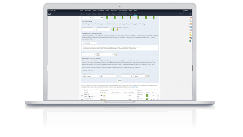 In addition to these, there are two other advanced and optional parameters: the time window, which defines the duration of the rule over time; and the sales speed, i.e., the number of reservations received in a given period of time that triggers the rule.
